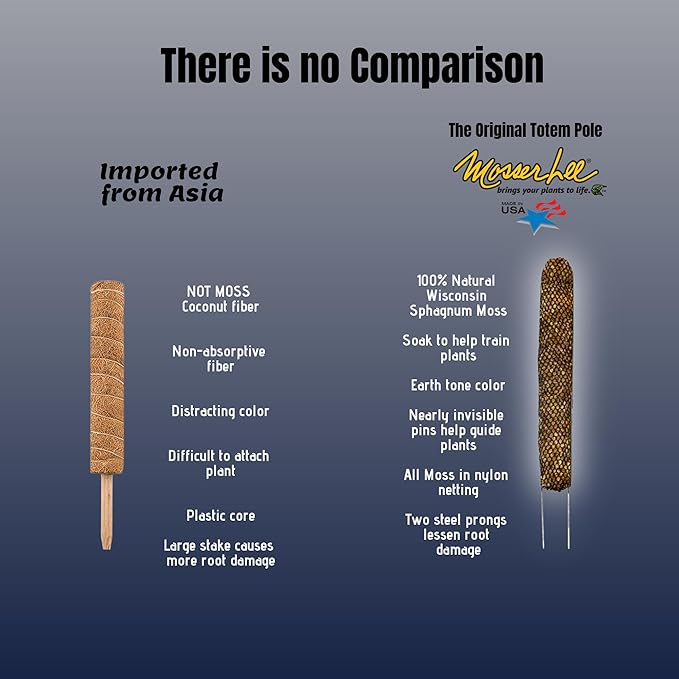- Moss Poles for Monstera: Custom-made for monstera plants, our moss sticks offer an organic, durable solution for plant support. Made in the USA, this large moss pole caters for bigger indoor plants.