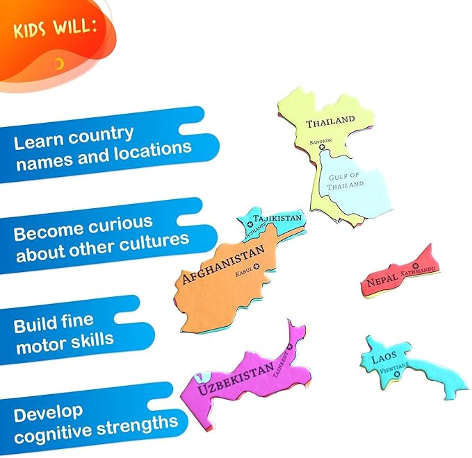 - PERFECT FOR FAMILY BONDING: These map of Asia jigsaw country puzzles offer a great way for families to bond. Our kids map puzzle builds teamwork, communication, and quality time. Enjoy this educational geography for kids activity with the whole family with our puzzle game—a fun and easy way to learn states and capitals for kids and adults.