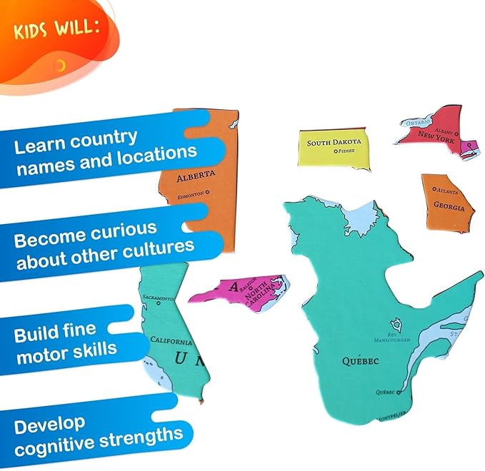 - PERFECT FOR FAMILY BONDING: These map of USA jigsaw country puzzles offer a great way for families to bond. Our kids map puzzle builds teamwork, communication, and quality time. Enjoy this educational geography for kids activity with the whole family with our USA map and Canada puzzle—a fun way to learn states and capitals for kids and adults.
