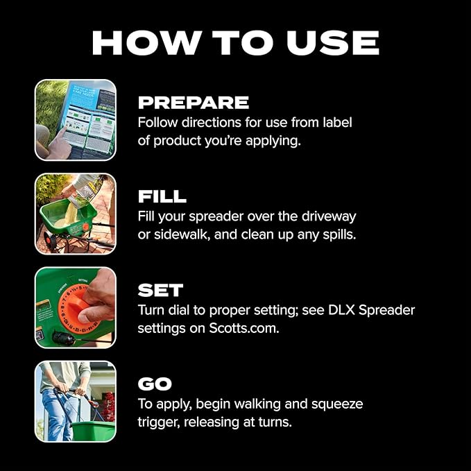 - Use the Scotts Turf Builder EdgeGuard DLX Broadcast Spreader to apply Scotts lawn care products