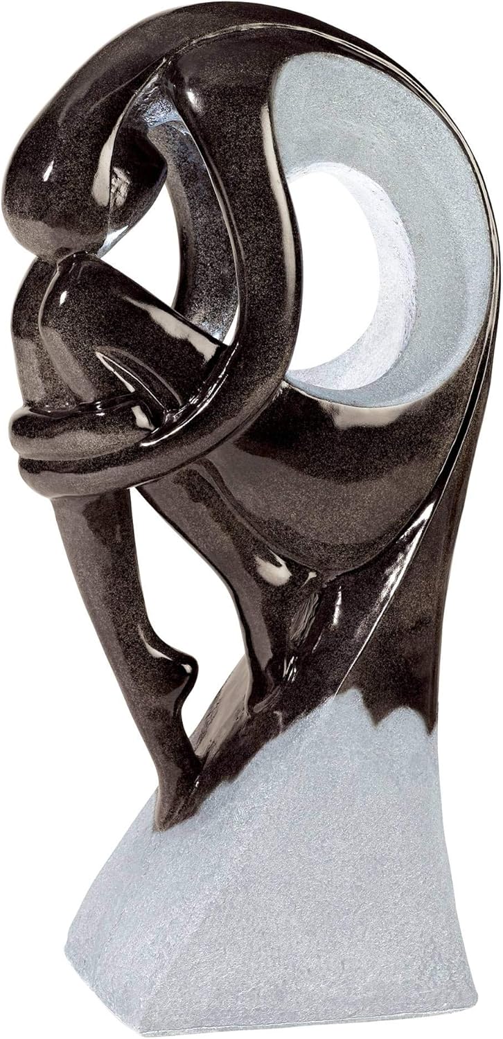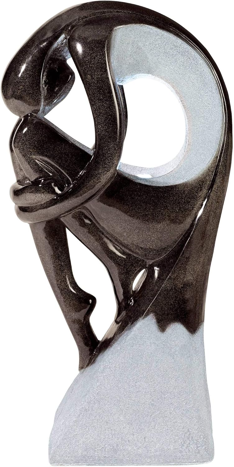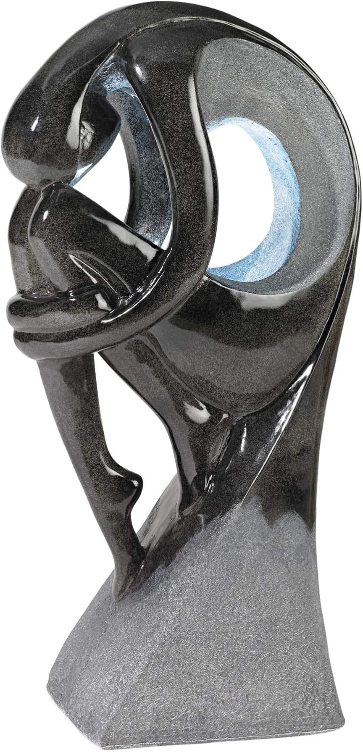 - 【Relaxing Water Fountain】Noir black and gray stone finish. Lightweight cast resin construction. Easy to set up and use. Plug-in fountain. Comes with water pump, 9-foot long cord, and LED lights.