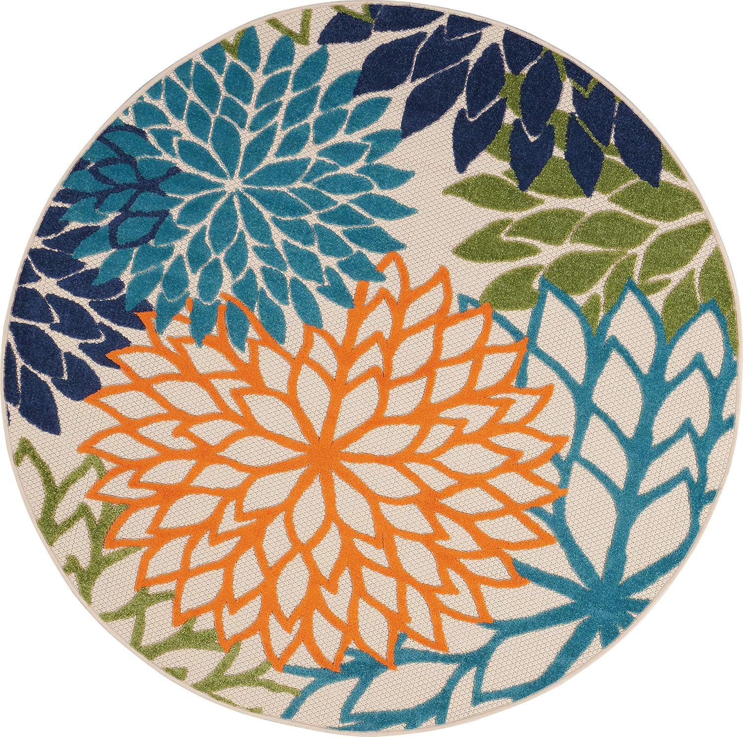 Nourison Aloha Indoor/Outdoor Multicolor 5'3'' x Round Area--Rug, Tropical, Botanical, Easy--Cleaning, Non Shedding, Bed Room, Living Room, Dining Room, Deck, Backyard, Patio (5 Round)