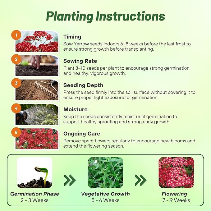 - VERSATILE USES & HARDY PERENNIAL: Our yarrow seeds for planting thrives in full sun, making it the perfect for xeriscaping and low-water gardens. Our hardy perennial flowers offers vibrant blooms from summer and fall with minimal care. Whether dried or boiled, they can be used to add an aromatic, flavorful twist to your tea, providing a unique, fragrant experience.