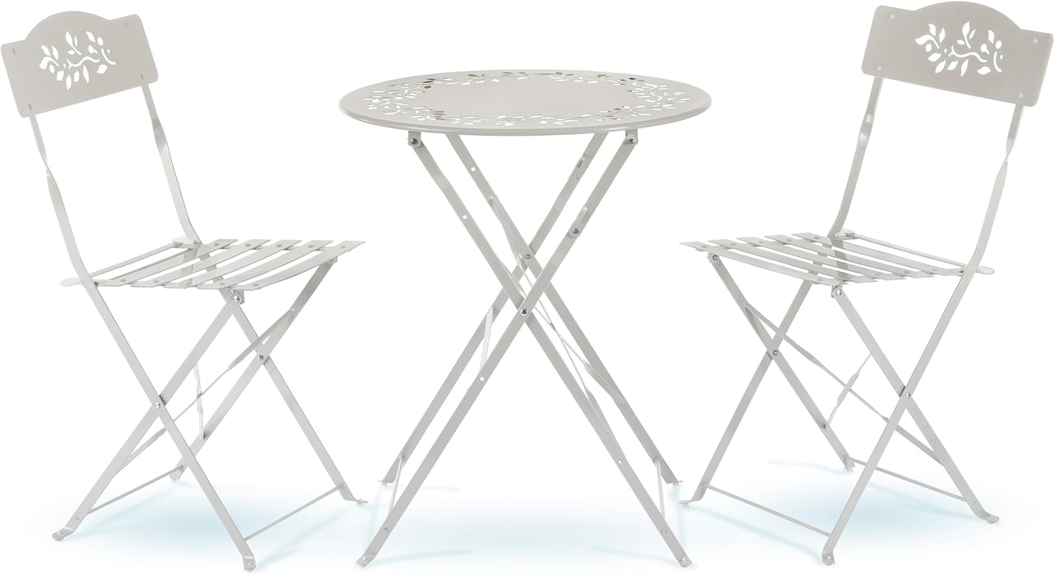 - PATIO SEATING SET: Bright, vibrant colored steel 3 piece bistro set featuring 2 folding chairs and table, and provides a pop of color to your indoor or outdoor living space or patio