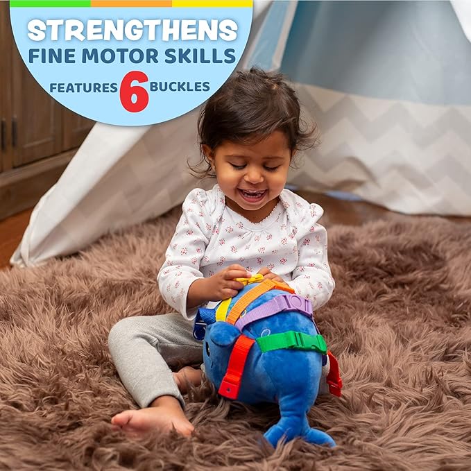 Buckle Toys Blu Whale Stuffed Animal Montessori Toys for Toddlers 1-3, Learning Activity Toy & Sensory Toys to Develop Fine Motor Skills and Problem Solving, Classroom and Toddler Travel Essential