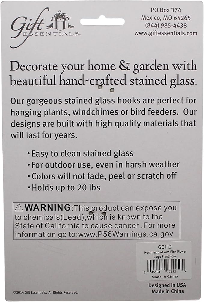 Plant Hanger Hook - Hummingbird with Pink Flower - Stained Glass Sun Catcher Plant Hook for Indoor and Outdoor Use - Copper S Hooks Top and Bottom