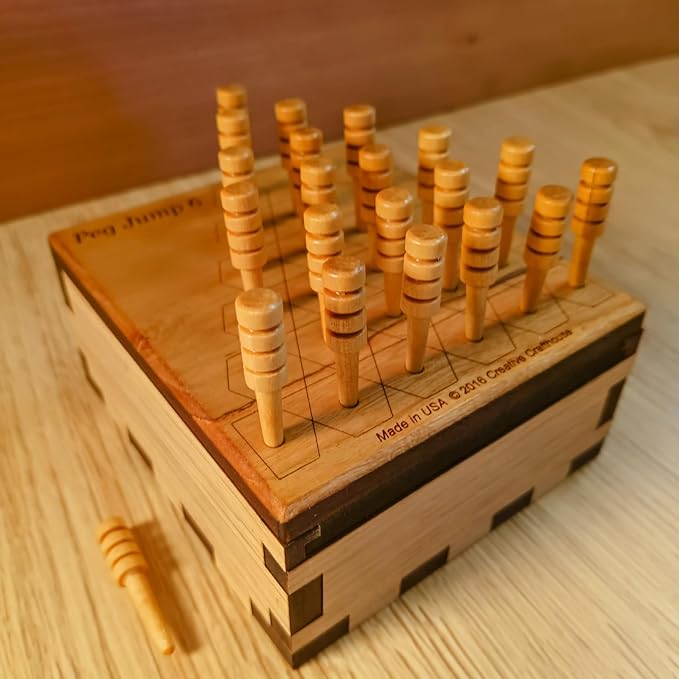 - Comes in beautful box with sliding lid. The pegs are wood cribbage style pegs and one extra is provided.