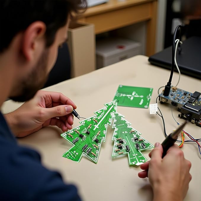 - The flash Christmas tree kit consists of a combination of three circuit boards, the user through their own welding assembly, so that the 36 LED alternating flashing, in the space of a Christmas tree in the outline of the three-dimensional (night environment to see better).