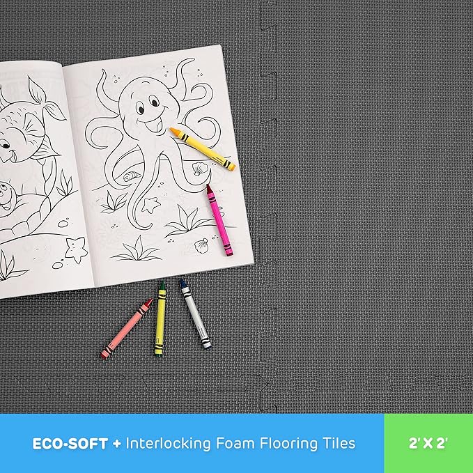 - 【Spacious Comfort for Little Explorers】 Embrace the blend of safety and fun with our 2'x2' baby play mats, larger than most on Amazon. Each tile, made of 1/2" thick closed cell EVA foam rubber, offers a luxuriously soft surface. Our foam puzzle floor mat is designed for joyful tummy time and playful adventures, complete with two edge pieces for a flawless finish.