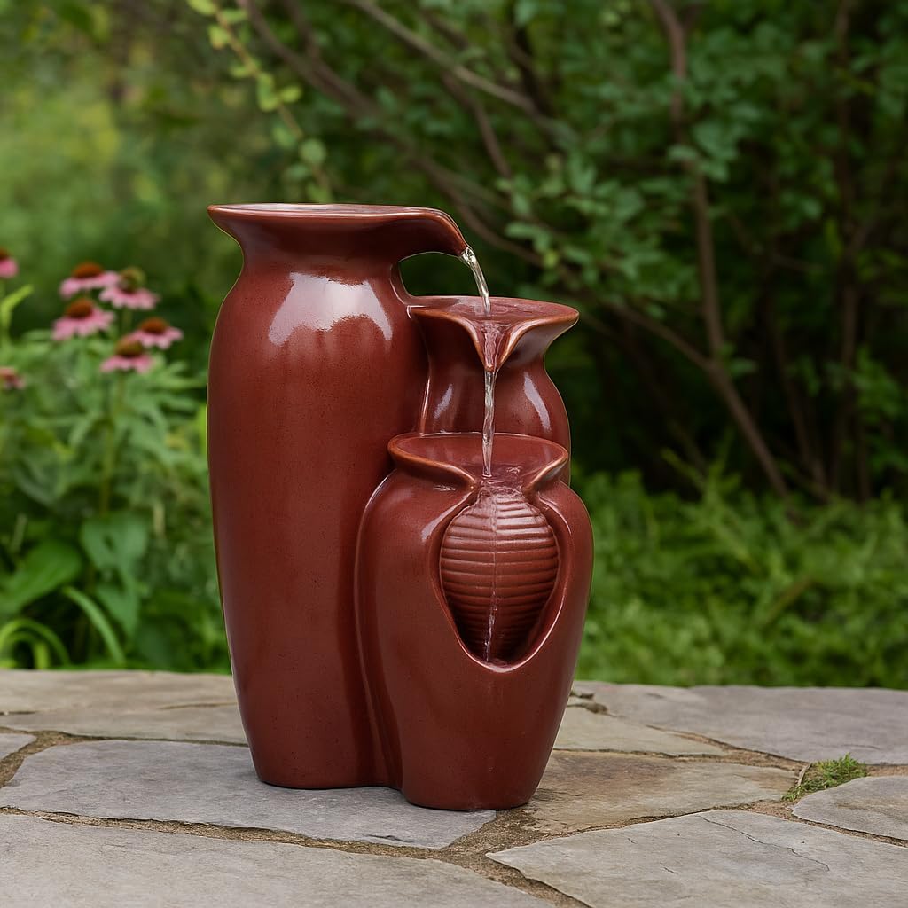 - OUTDOOR DÉCOR: Features a 3-tiered design with ceramic-look jars for a stylish and soothing addition to your porch, backyard, or lawn