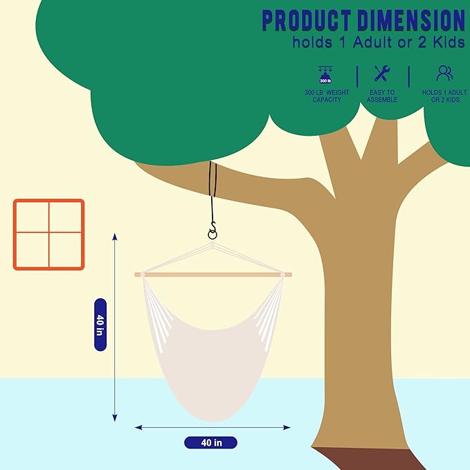 - PERFECT SIZE: Hardwood Spreader Bar is 40-inch wide. And the hammock cloth is elastic, you can adjust it as you need when you lie down. It provides plenty of room for you to spread out and relax. With an "o" ring and strong knots at the end, it can be easily hanging on the tree or a hammock stand