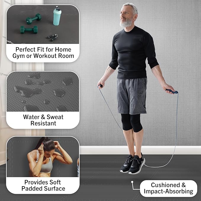 - EASY ASSEMBLY - These interlocking foam tiles are easy to piece together, and they can be disassembled just as simply for quick storage. Once connected, the nonskid floor mats stay firmly in place, providing supportive gym flooring for home gym equipment.