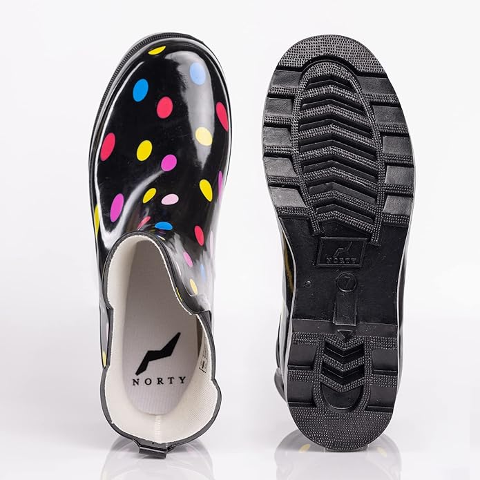 • NATURAL RUBBER CONSTRUCTION: When the wetness tries to sneak in, our cute rain shoes shut it out with a highly water-resistant, built-to-last design. They also have a rugged, chunky, and deep tread to keep you steady in slippery conditions.