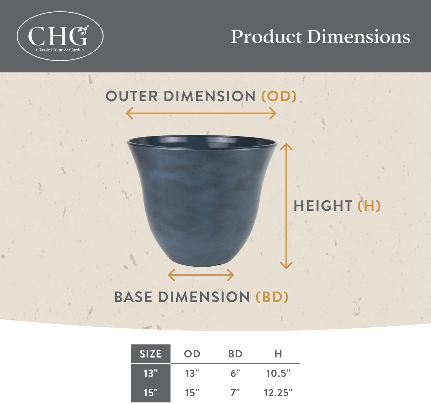 - QUALITY MATERIAL & SIZE: Built with UV-resistant resin, this durable 15"D x 15"W x 12.25"H planter pot can be used indoors or outdoors. It resists fading, cracking, and wear, making this flowerpot a reliable option for the long term.
