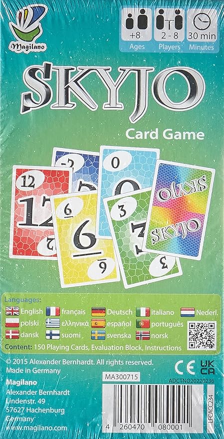 - Great fun for your friends and family. Skyjo is a fun card game that is great fun for children and even large game friends (adults). The card game is very suitable for short games in between and is also an enrichment for a sociable and beautiful game evening.