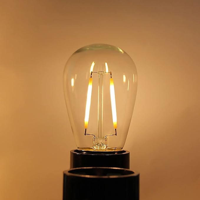 - 💡【2W Replacement Bulb】S14 LED light bulbs 2watt, E26 medium screw base, durable plastic bulb shell, dimmable, to replace 15w to 25w S14 bulbs. 2700K soft warm white color will provide you with a cozy and romantic environment. LED filament technology, vintage look, great for weddings, parties and garden decoration.