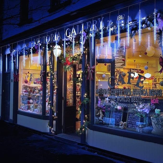 - IDEAL DECORATIVE LIGHTS - Falling raindrop light sare good use to decorate streets, parks,store, it also suitable for home,garden Yard,fence,backyards,path, sidewalks, flower beds, fences, roofs, trees,etc,decor, Christmas, New Year, Wedding, Birthday Party, Valentine's Day,Business Celebration and any celebrating time all over the environment decoration