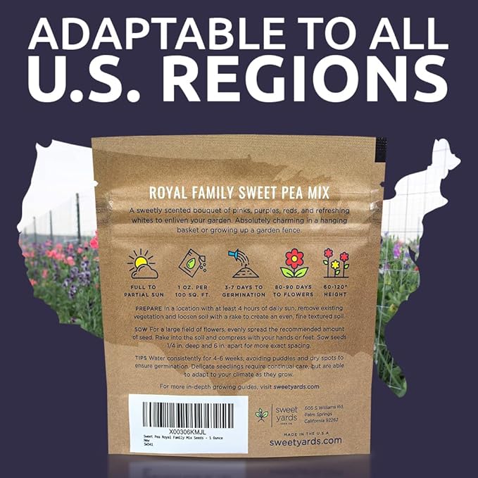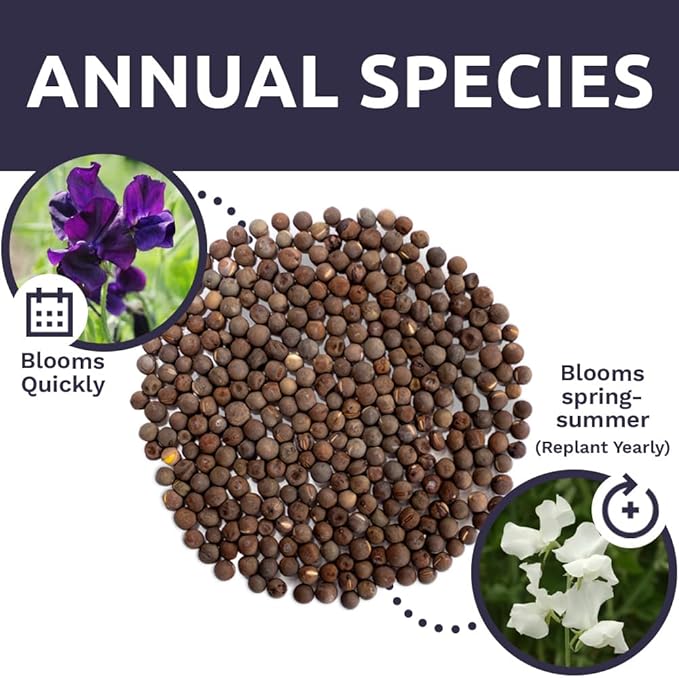 Sweet Pea Seeds Royal Mix - Bulk 1 Ounce Packet - Over 350 Seeds - Large Fragrant Lavender, Purple, Red, Pink and White Blooms