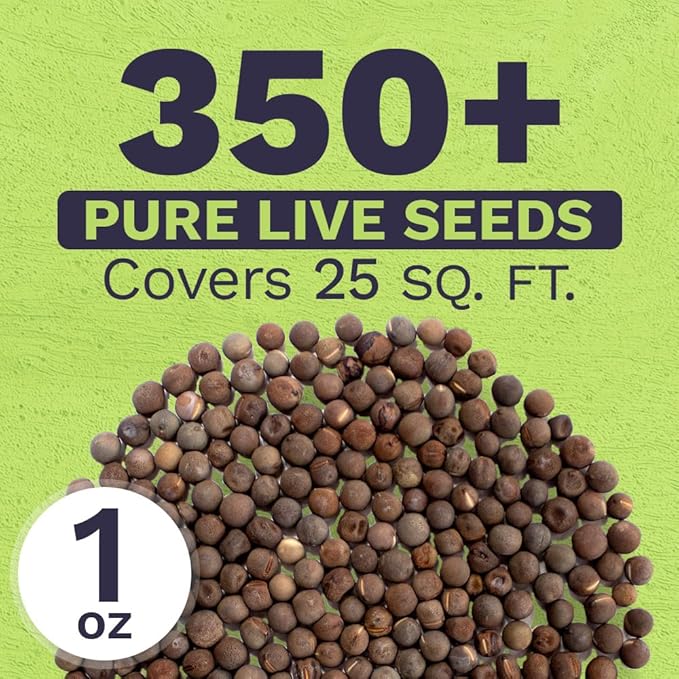 - Extra large packet contains over 1 full ounce of pure live seeds (350+ seeds!) Enough to cover 25 square feet