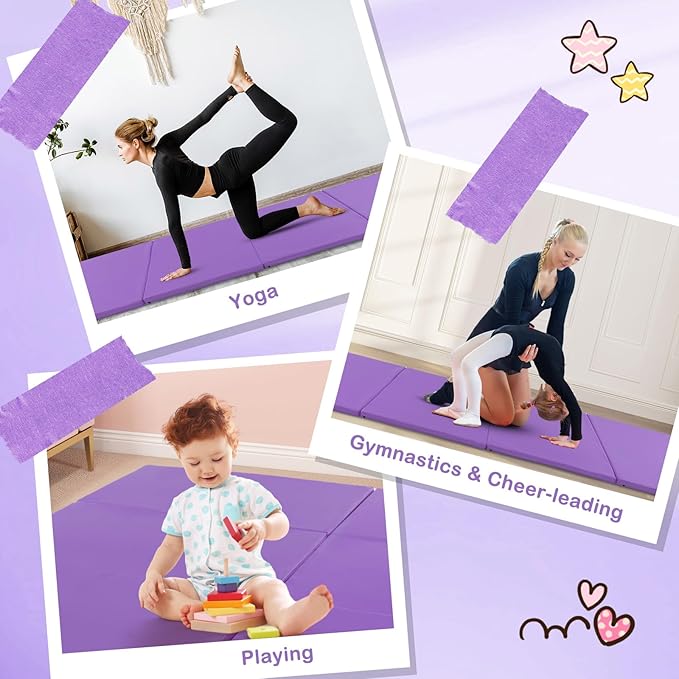 - Versatile for Various Activities: The folding mat is not only suitable for gymnastics training, but also for various other activities such as yoga, cheer-leading, martial arts, and kids’ playing. It provides a comfortable and safe surface for a variety of activities.