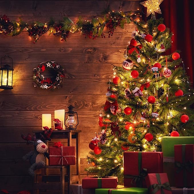 DEWENWILS C7 Warm White Christmas Lights, 33.3ft 50 LED String Lights Waterproof, Indoor/Outdoor Decorations for Xmas Tree, Patio, Garden, Yard, Porch, Green Wire, UL Listed