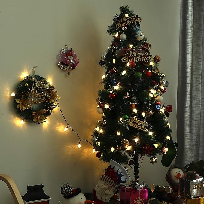 - 【Super Bright & Energy Saving】: 50 count C7 LEDs, brighter than traditional incandescent string lights, flicker-free lighting. 4.8w rated watts, low consumption, Up to 90% energy saving; Excellent heat dissipation and Bulbs are Cool to the Touch when Lit, long lifespan up to 50,000 hours