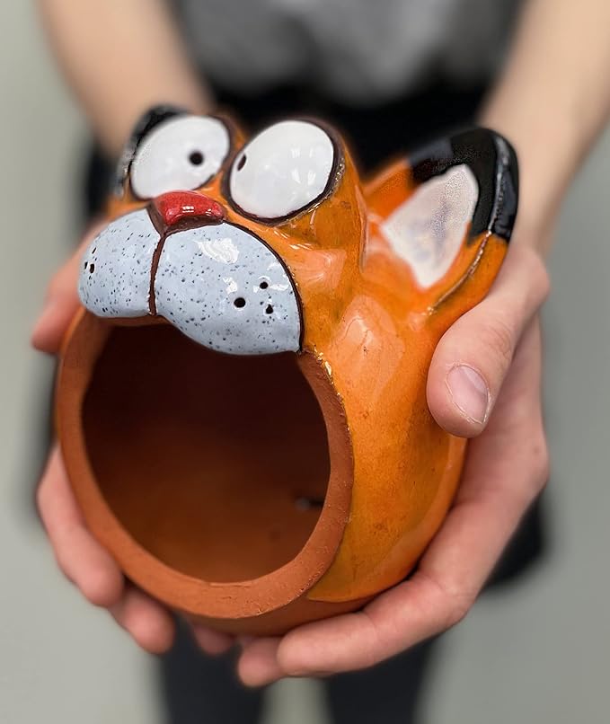Ceramic Garden Decor - Cat Lawn Stake - Bird Feeder - Outdoor Statue - Perfect, Unique Gifts for Gardeners Woman, Men - Handmade, Frostproof