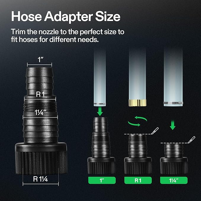 - Easy Installation: Adjustable outlet direction and 20.3FT power cord, to meet different requirements; Flexible Tube Size: 3/4” or 1” internal diameter; It can be worked with filters (filter system) together