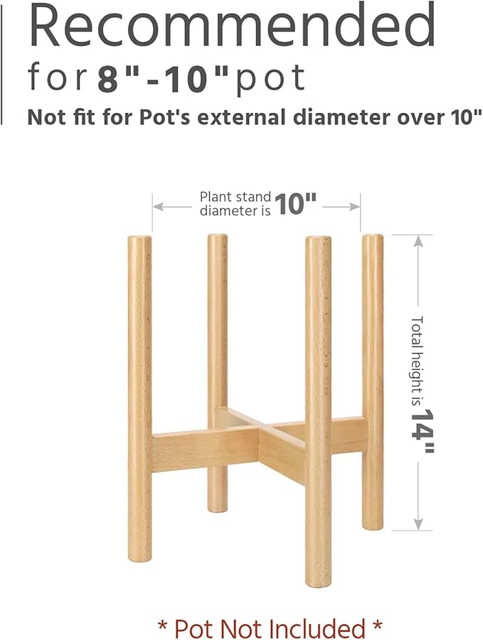 - This wood plant stand suitable for the round planter which largest diameter is 10", larger than 10" diameter can't be used with this item. Perfect to display your lovely plant to contrast with white cylinder ceramic planter, cement planter or brass planter.