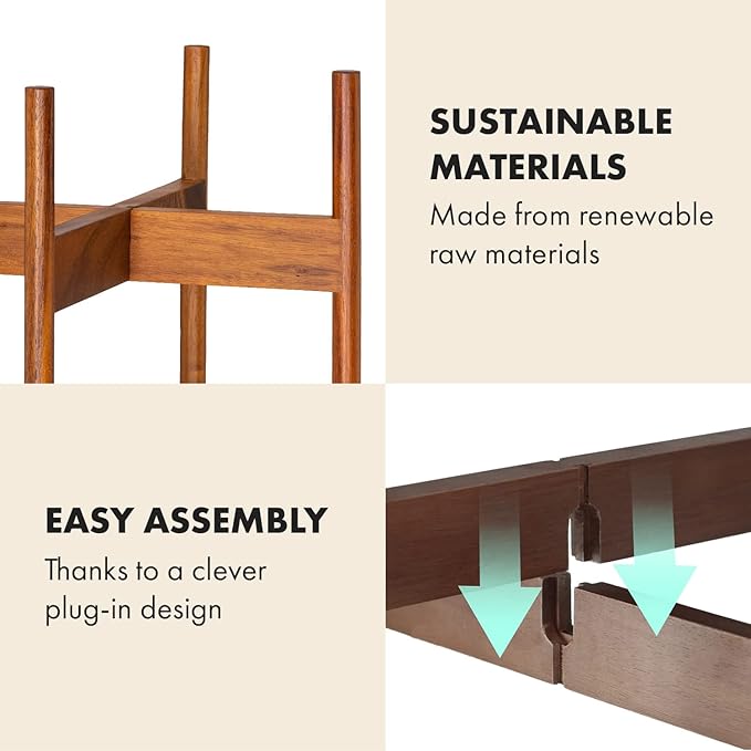 - SUSTAINABLE, ECO-FRIENDLY MATERIALS: This wood plant holder is made from natural Acacia, which is strong as steel and offers the warm tones of solid wood. We care deeply about the environment and have chosen Acacia wood for these standing planters.