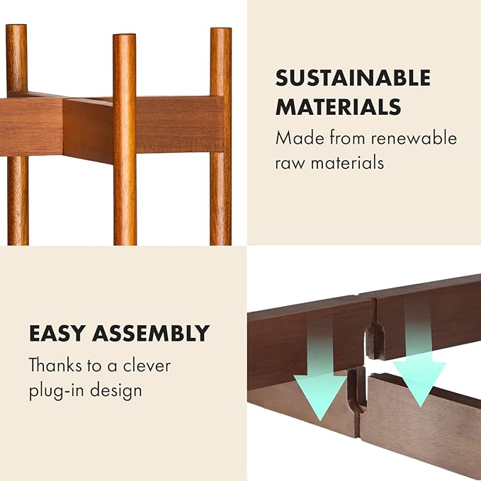 - SUSTAINABLE, ECO-FRIENDLY MATERIALS: This wood plant holder is made from natural Acacia, which is strong as steel and offers the warm tones of solid wood. We care deeply about the environment and have chosen Acacia wood for these standing planters.