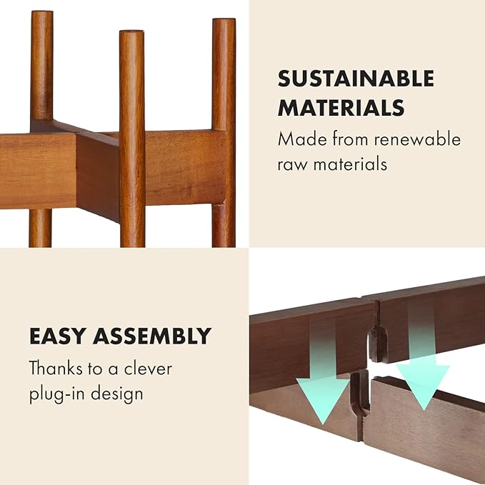 Fox & Fern Mid Century Plant Stand — 8 Inch Fixed Size Wooden Plant Stand for Indoor Planters; Raised Flower Pot Holder for Indoors; Plug In Design; Two Height Options; Easy to Assemble - Acacia