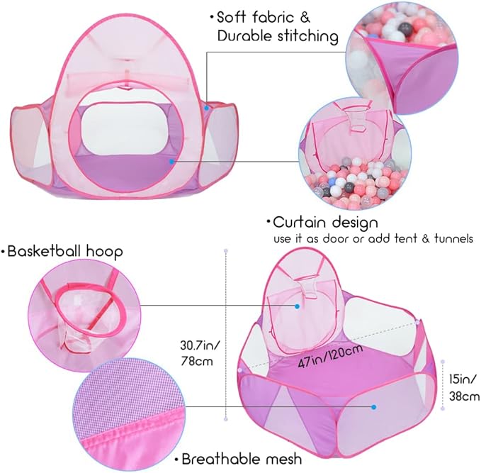 - LARGE SPACE: The size fits for three kids (1 - 4 years old) inside play together. We recommend you buy separately at least 200 or 300 balls ***BALLS NOT INCLUDED***