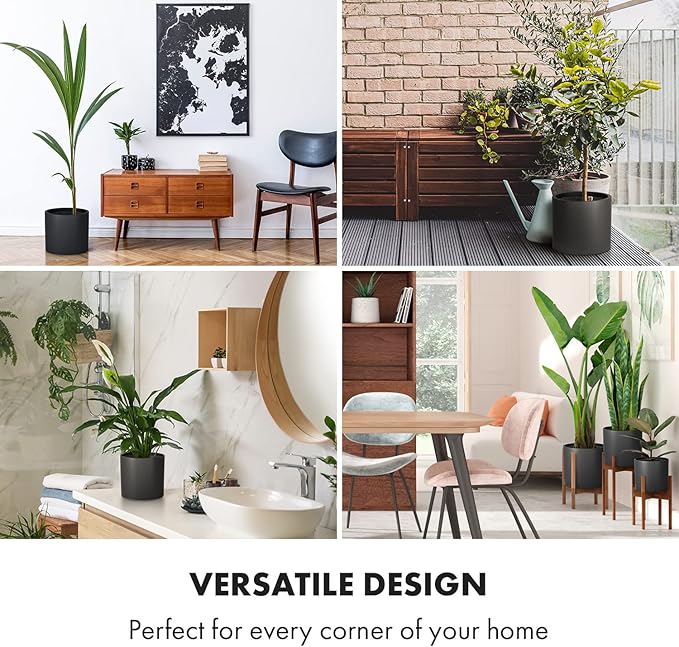 - UNIQUE DRAINAGE DESIGN – Our well-designed innovative 10 inch planter comes with a removable plug. These black planters for indoor plants have a convenient drainage hole, to allow excess water to flow out so you never have to worry about keeping your plants well fed and hydrated.