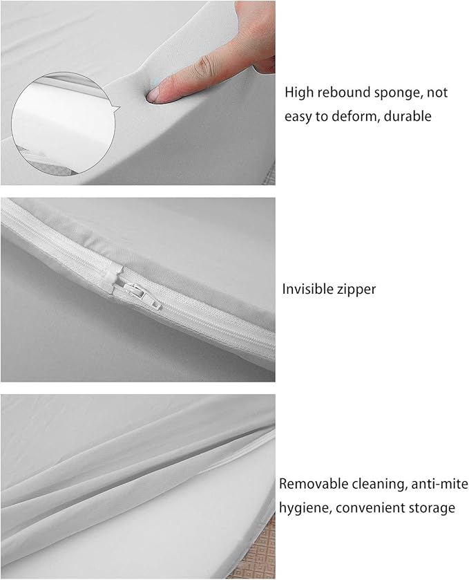 - [Easily Install & Clean] The baby ball pit is divided into two parts, the ball pit and the cushion are separate. Open the packaging, unfold the ball pit, place the cushion in it, and let it sit for 48-72 hours to restore its original shape. Easy to disassemble and clean. The bottom cover is designed with a zipper. Pull the zipper to take out the foam, and put the cloth cover into the washing machine for cleaning.(Note: the internal foam is not washable)