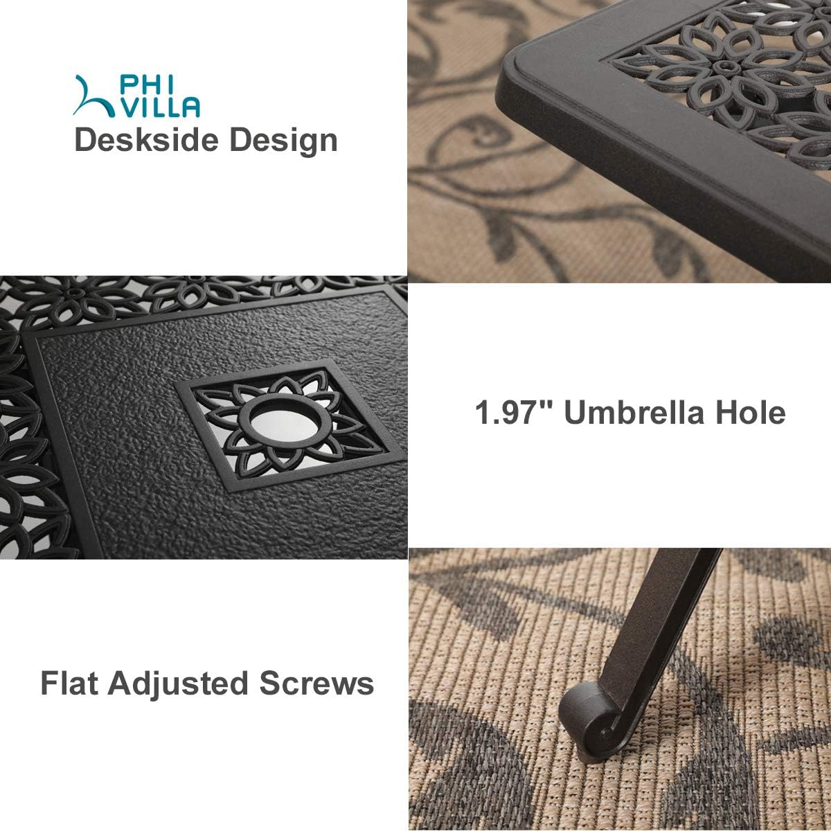 - All Cast Aluminum Bar Table: Dimension: L27.5" x W27.5" x H42"; PHI VILLA this bar table combined with heavy-duty construction work to create a classic, long-lasting, furniture piece. Adjustable levelling feet so you can be sure your table is stable
