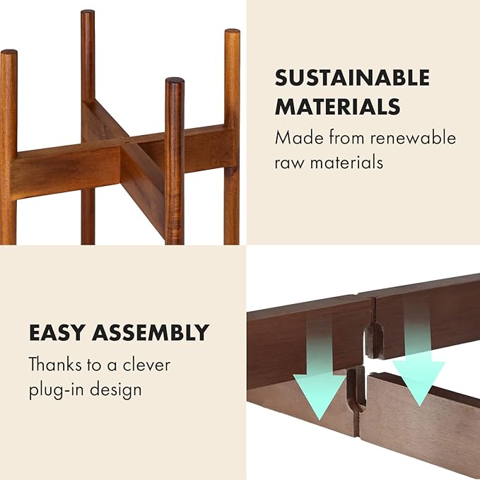 - SUSTAINABLE, ECO-FRIENDLY MATERIALS: This wood plant holder is made from natural Acacia, which is strong as steel and offers the warm tones of solid wood. We care deeply about the environment and have chosen Acacia wood for these standing planters.
