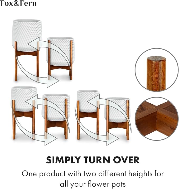 - MID CENTURY PLANTER, MODERN VIBES: Fox and Fern prides itself on perfecting its craftsmanship and creating plant stand designs that hold timeless appeal. Add a fresh, elegant, and modern look to your home that will stay in style for years to come.