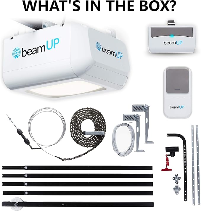 - EFFORTLESS GARAGE DOOR OPENER: Say goodbye to manual lifting & effortlessly open & close your garage door with the beamUP Overhead Door Garage Door Opener. Whether it's an 8'x7' single or 16'x7' double door, the BU100 Workhorse provides a smooth & quiet operation