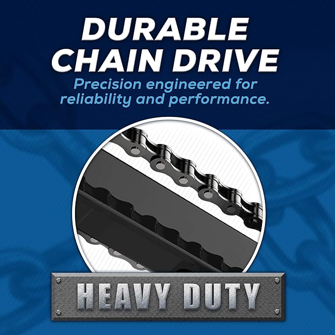 - HEAVY-DUTY GARAGE MOTOR: With the 3/4 Horsepower equivalent DC motor & durable, high-grade reinforced steel chain drive, this garage door motor is powerful enough to open up to 7' tall garage door & provide safety, reliability, and security for years to come