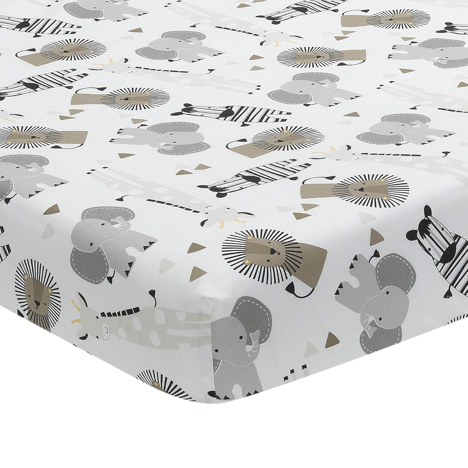 - 100% breathable cotton fitted crib sheets include one tossed animal print and one solid gray. The sheets have elastic all around for a safe and secure fit on a standard crib/toddler mattress measuring 28" x 52".