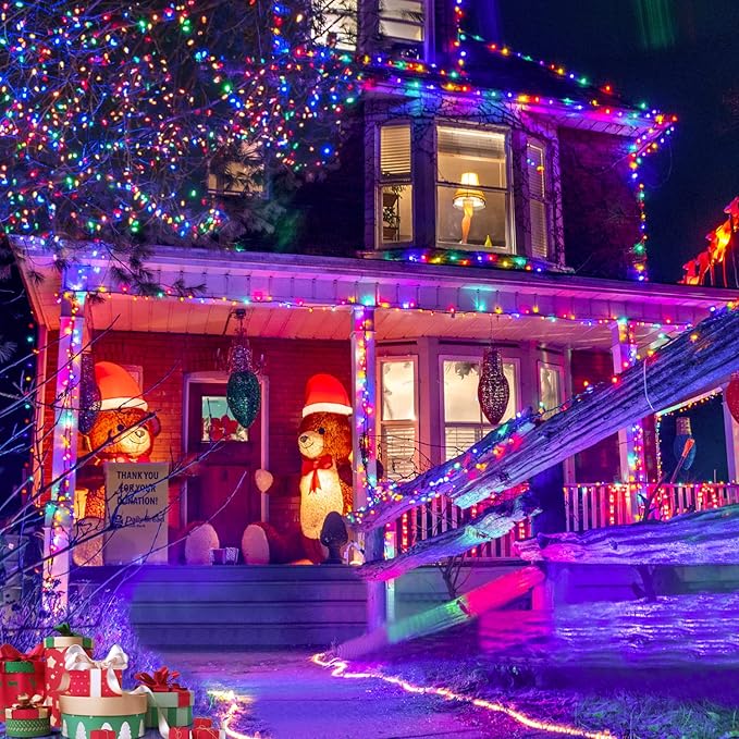 - 2 Pack Solar Christmas Lights: Still struggling to find power for your outdoor decorations? Our string lights are solar powered and can be used outdoors without being restricted to an outlet. When fully charged, the solar panel can work for 8-12 hours. While supporting environmental protection, it can save you electricity bills. The high-efficiency solar panel and 200 high-quality lamp beads will work together to emit a stable and bright light that will accompany you all night