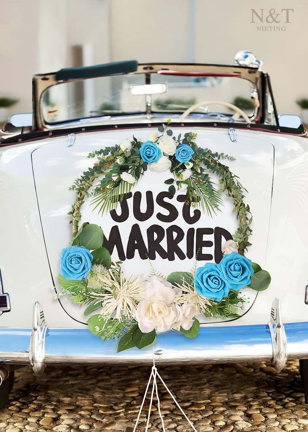 N&T NIETING Artificial Flowers, 25pcs Fake Flower Roses with Stem for DIY Wedding Bouquets Centerpieces Bridal Baby Shower Party Home Decoration, Blue