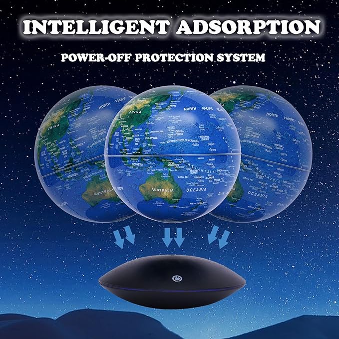 - 【UPGRAD TECHNOLOGY】Beautiful and futuristic world globe!Magnetic levitation globe is an awesome high tech gadget that people of all ages will enjoy. To have something hovering, levitating, floating and giving the illusion of anti gravity.Rotates 360 degree while hanging in the air