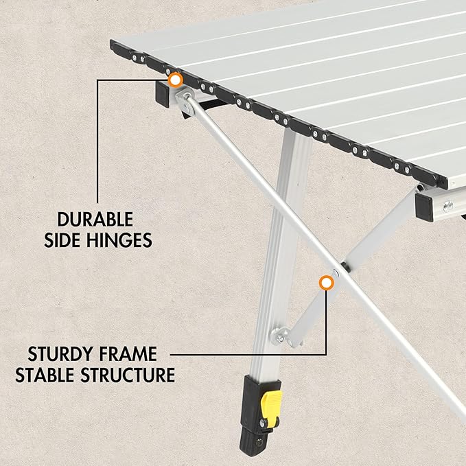 - Easy To Carry: The aluminum slat table top can be rolled up; legs are foldable with non-skid feet. Included carry bag makes the table extremely compact for easy storage and transportation