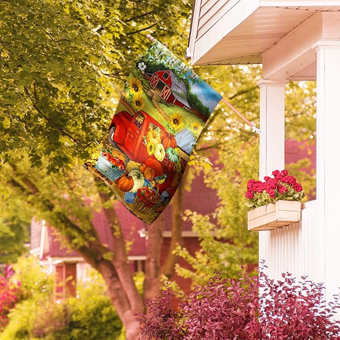 Morigins Autumn Harvest Farm Truck Fall Pumpkin Garden Decorations Double Sided Farmhouse Outdoor House Flag 28 x 40 Inch