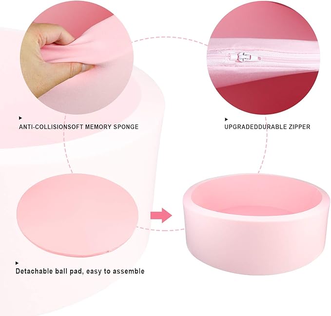 TRENDBOX Memory Foam Sponge Indoor Round Ball Pit (NO Balls) for Toddler Children (Light Pink)