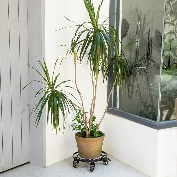 AMAGABELI GARDEN & HOME 12" Metal Plant Caddy Heavy Duty Plant Stand with Wheels Wrought Iron Potted Brake Flower Pot Rack Rollers Mover Dolly Holder Indoor Outdoor Planter Trolley Caster BG1622