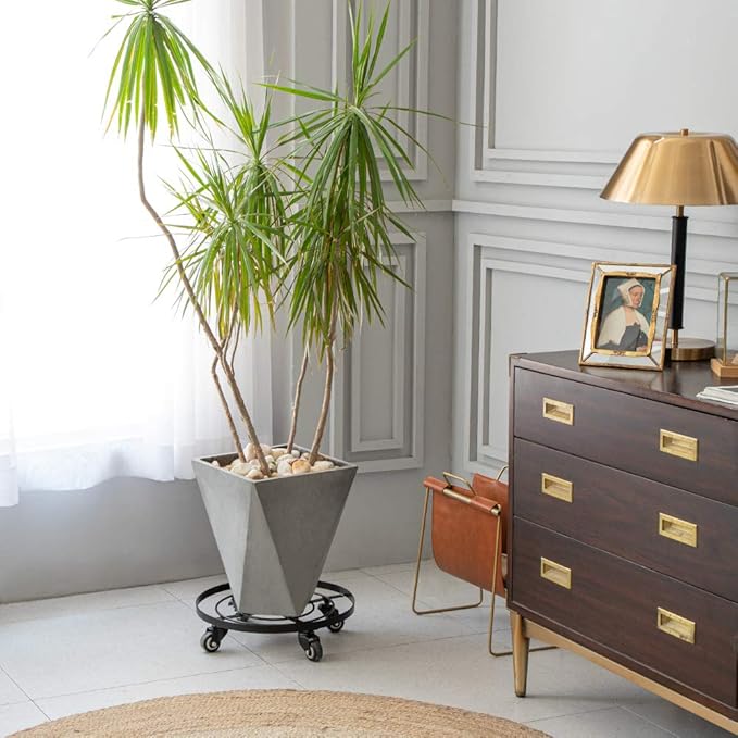 - Upgraded version firm Construction & Heavy duty: this upgraded plant coaster on wheels is modified according to customersโ reviews and feedback to the former version. The metal plant stand with wheels consists of 4 heavy duty wheels, which make this planter holder on wheels Available to carry up to 300 pounds flower pot around your home. Now you can plant a tree inside your house with this plant stand with rollers!