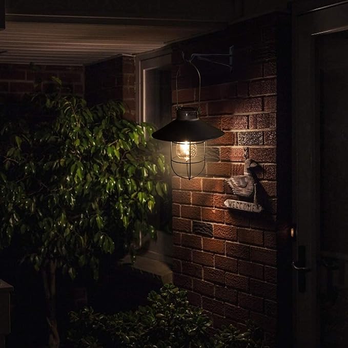 - 【ROMANTIC ENVIRONMENT】 -- Black solar hanging lantern emit a warm white light and create a romantic and comfortable space. NOTE: ONLY FOR DECORATION, NOT FOR ILLUMINATION PURPOSES